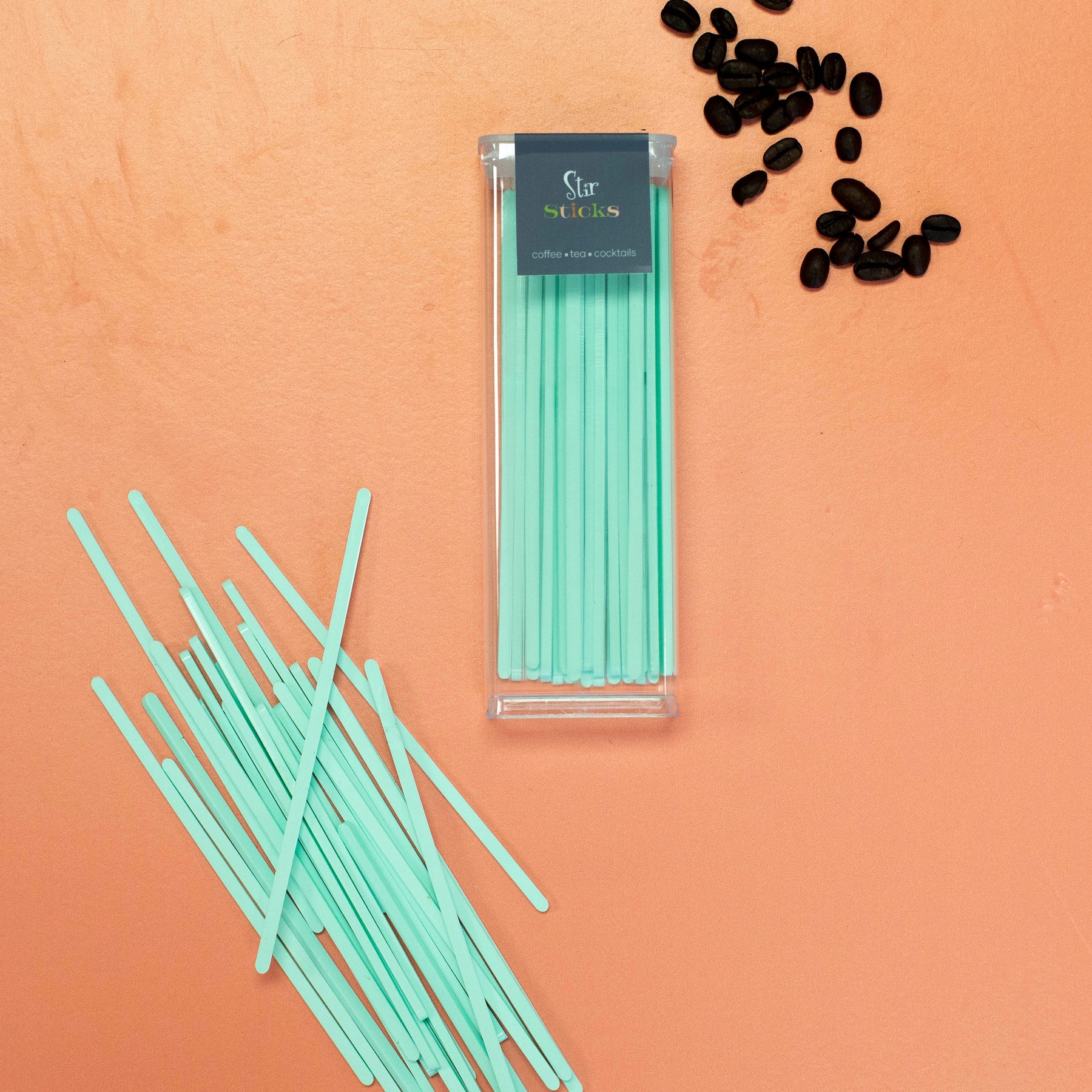 Each stirrer is crafted from durable, food-safe acrylic in an iconic retro aqua blue hue that pairs effortlessly with mugs, espresso machines, and curated countertop setups. At 5.5 inches tall, they’re perfectly sized for coffee, tea, cocoa, and cocktails.