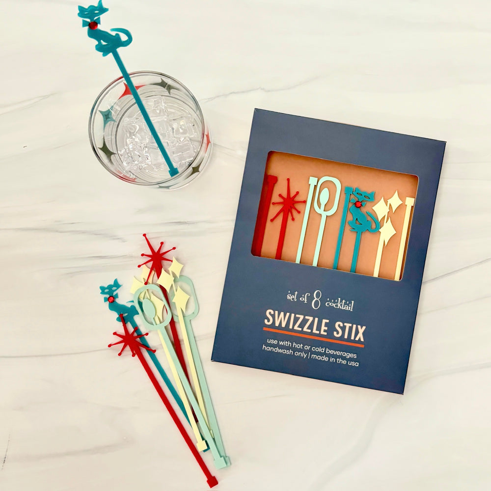 Mod Shapes Mid Century Barware Acrylic Beverage Mixing Swizzle Stirrers