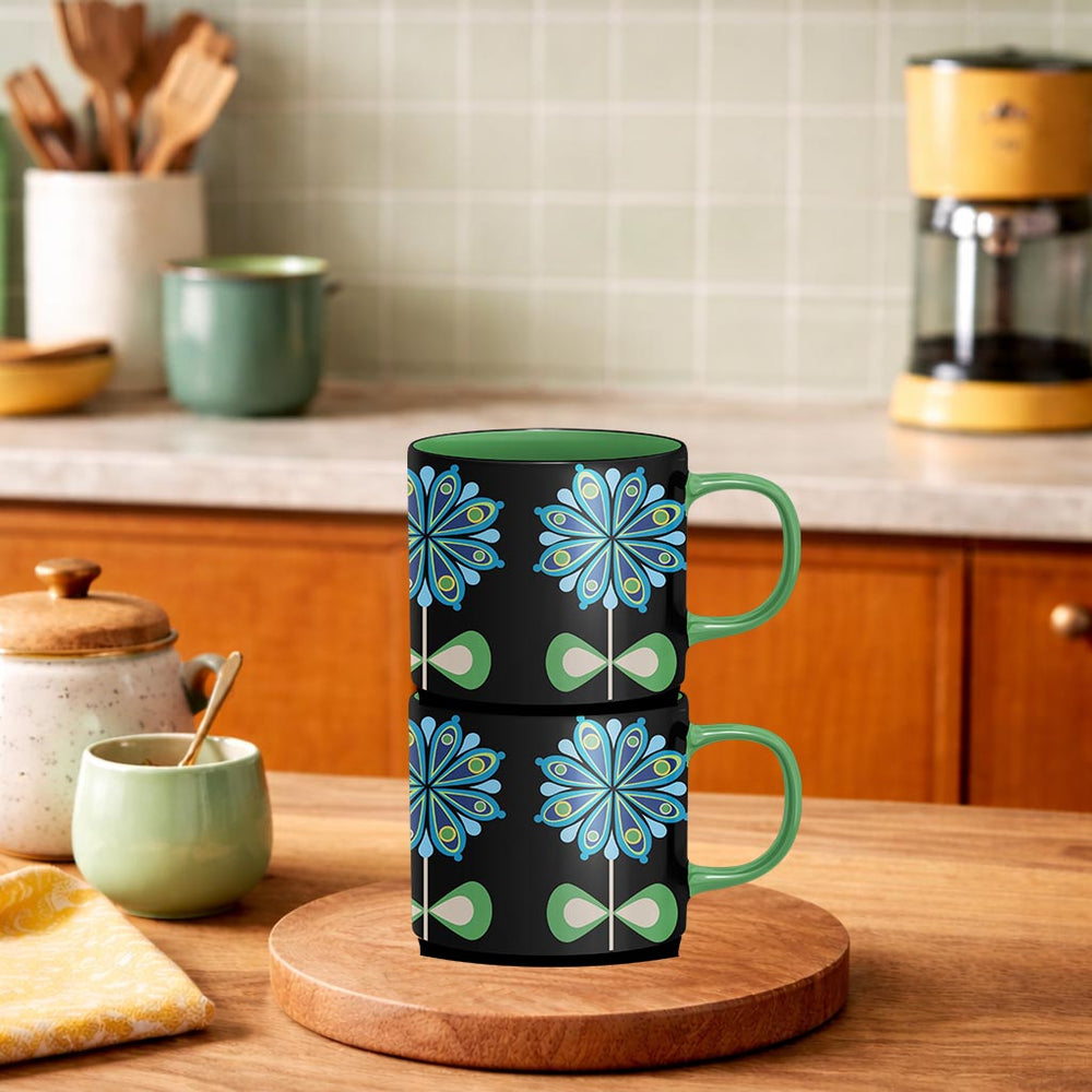 Blue Mid Century Modern Flower Stackable Matte Coffee Tea Mug