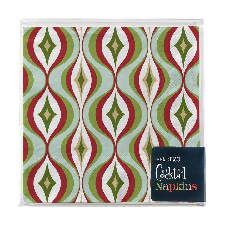 Impress your guests with our vibrant Mid Century Modern Diamond in Waves Cocktail Beverage Napkins! These stunning napkins feature a geometric diamond wave pattern in a vibrant mint green and deep red color, perfect for hosting dinner parties, cocktail parties, give a gift for a host/hostess, Birthday gifts, or even a Happy housewarming! Add a bit of timeless modern style to your next gathering!