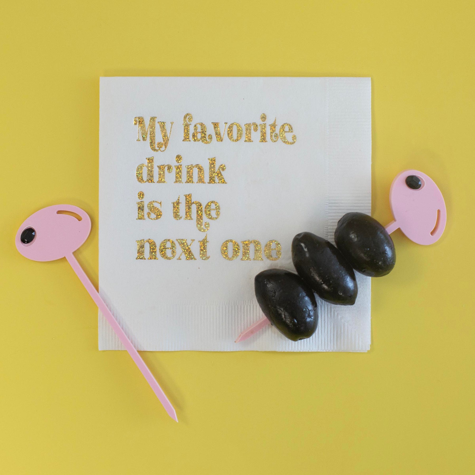 Pretty in pink with a wink of sparkle, these Pink Olive Acrylic Cocktail Picks add instant charm to cocktails, charcuterie boards, and party spreads. Each olive features a glossy black rhinestone “pit” for a subtle touch of glam, making them perfect for martinis, spritzes, and celebratory pours.