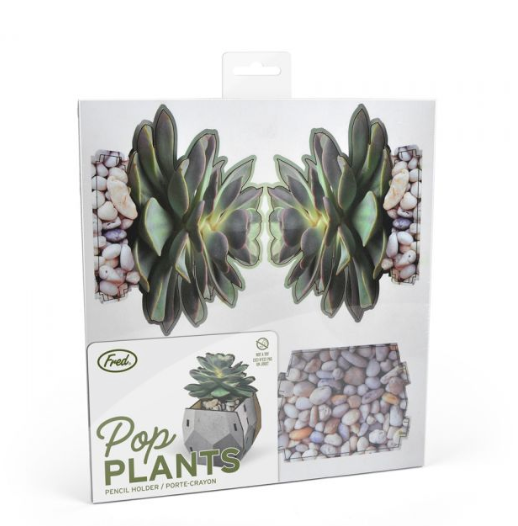 No green thumb? No problem! Fred's POP PLANTS will make an unbe-leaf-able addition to your desktop or vanity. Add some green and some storage for pens and pencils, makeup brushes, whatever. Four plant variations to suit any style - echeveria, snake plant, cactus, or aloe - each comes flat-packed with simple instructions for easy pop-up assembly. Made of durable MDF.