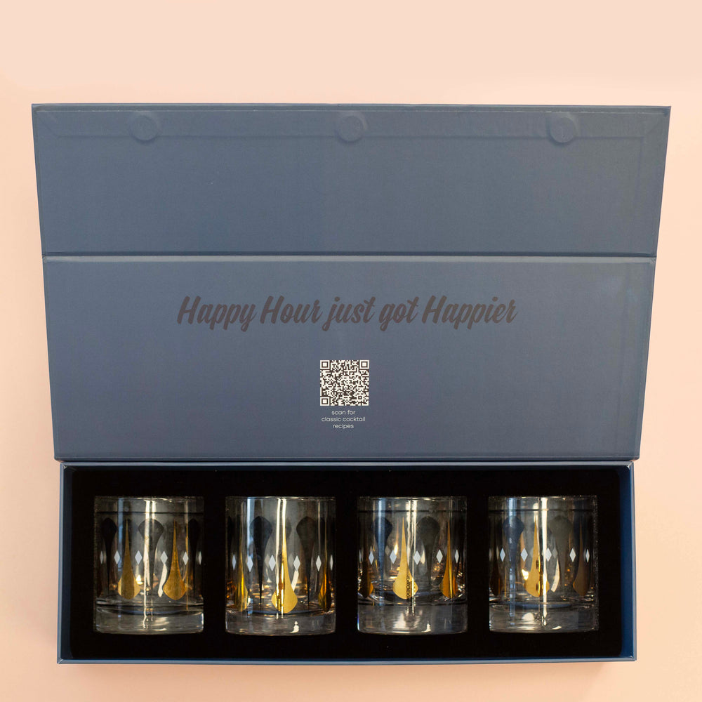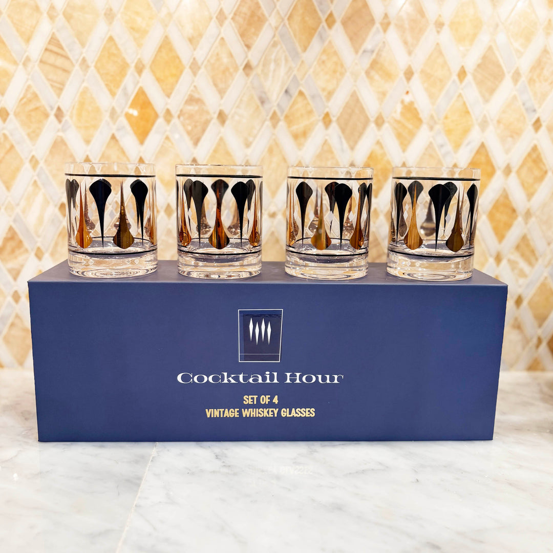 Cocktail Hour Set of 4 Black and Gold Darts Vintage Whiskey Glasses