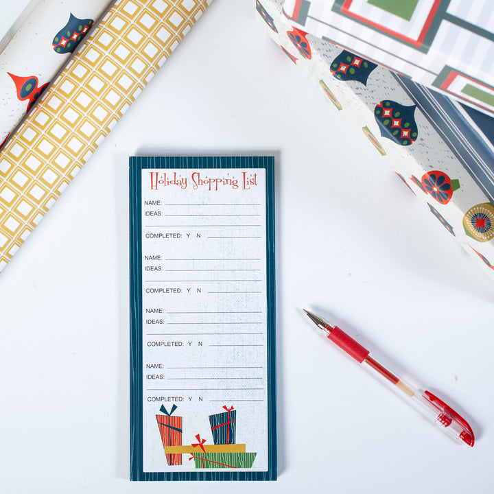 Write your amazing holiday gift list with this nostalgic notepad! Featuring a mid century modern design and retro gift illustrations, making your Christmas gift shopping a breeze. Stay organized and stylish with this Holiday Gift List pad!