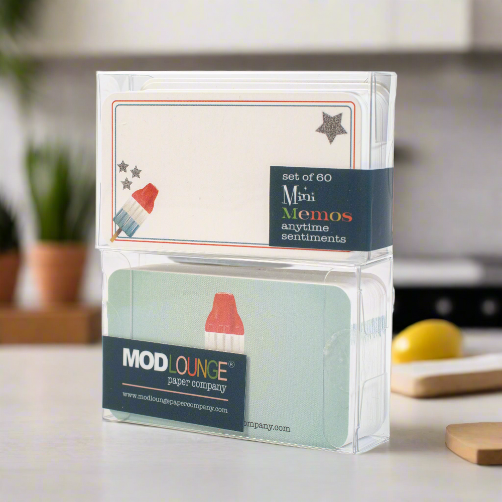 These mini memos pack a MIGHTY punch! With 60 mini cards in each box, these anytime sentiments have so many uses. Send a note in your child's lunchbox, slip a sassy message in your mates laptop, wish a co-worker a birthday note on their desk, or use at parties as food tags on a buffet table, or name tags at a dinner party. You will find that once you start using them, you'll become addicted to writing daily sentiments!