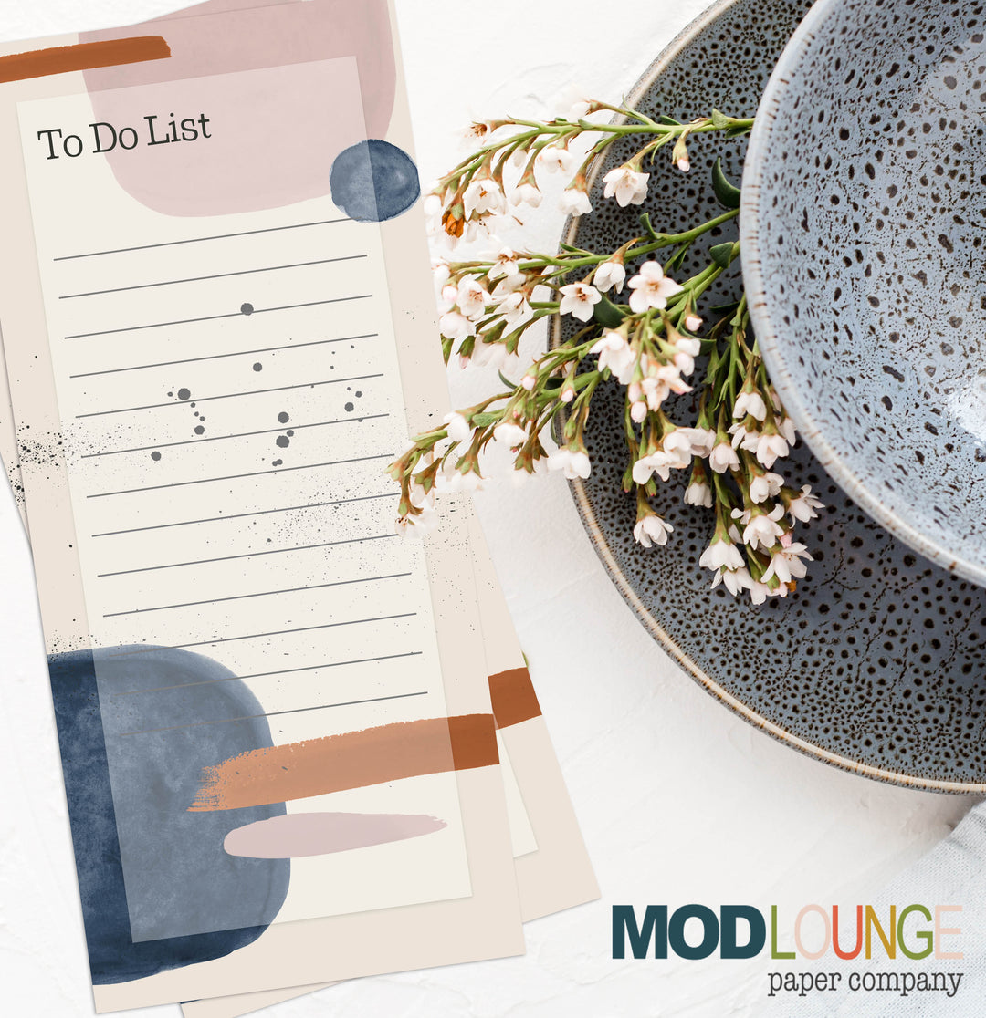 Stay organized in style with our Abstract Pattern To Do List! Featuring an eye-catching abstract art design in a trendy blue, blush, and brown color palette, this to do list will add a touch of mid-century modern flair to your daily routine. Keep your tasks in check with this chic and functional tool.