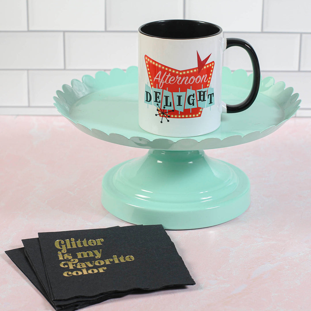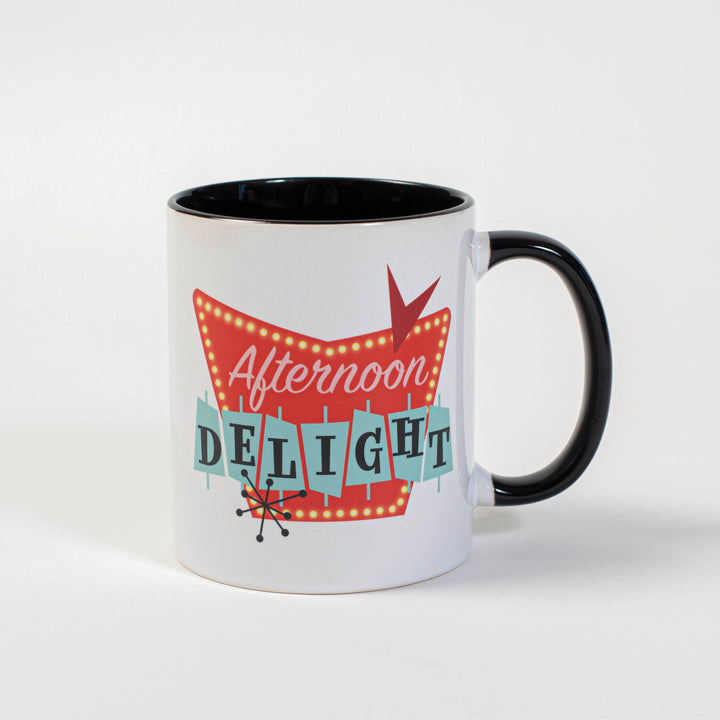 This 11oz coffee mug lets you enjoy your favorite beverage in vintage style. The contrasting interior and handle give it a nostalgic look, while the "Afternoon Delight" text pays homage to the retro look. Start your day with a cup of coffee and a reminder of simpler times.