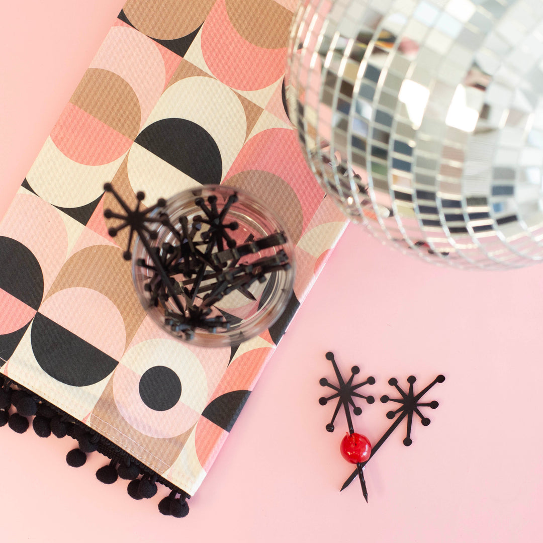 Bring 50's vintage vibe to your next event with these nostalgic Starburst Black Acrylic Cocktail Picks! Each pick is made from a sturdy acrylic for a vibrant and eye-catching look. Impressive yet subtle, these cocktail picks are sure to make your drinks stand out!