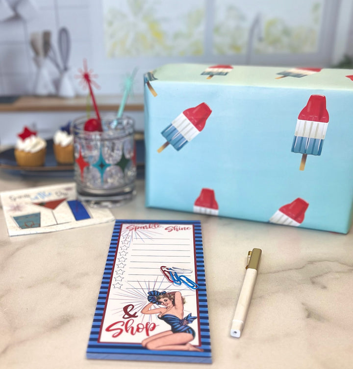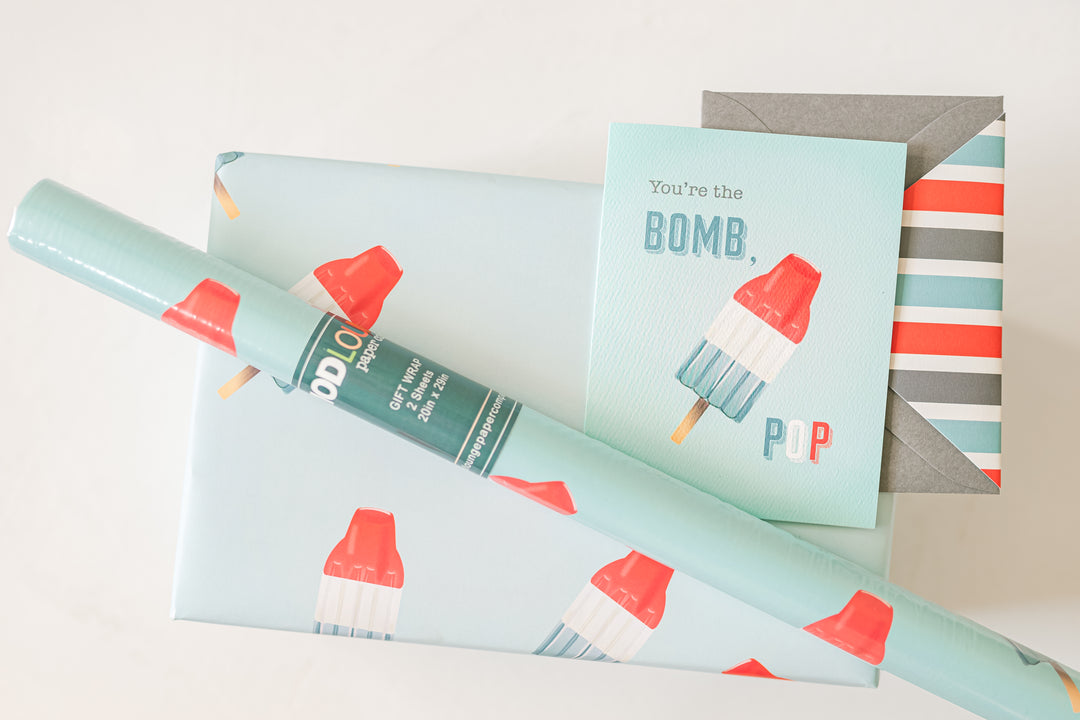 Make an unforgettable impression with this nostalgic Bomb Pop Gift Wrap! Each sheet is printed on 70# heavyweight paper with a colorful bomb pop print to ensure your gifts stand out amongst the crowd. Delight friends and family with a one-of-a-kind wrap that's as vibrant and refreshing as a summer day!