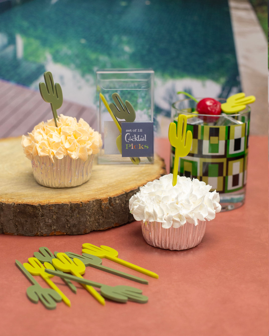 Add some desert flair to your swanky charcuterie or craft cocktails with these mini acrylic pics featuring light and dark green cacti. Perfect for spicing up any party with Southwestern vibes. (Get your prickly fingers on them before they're gone!)