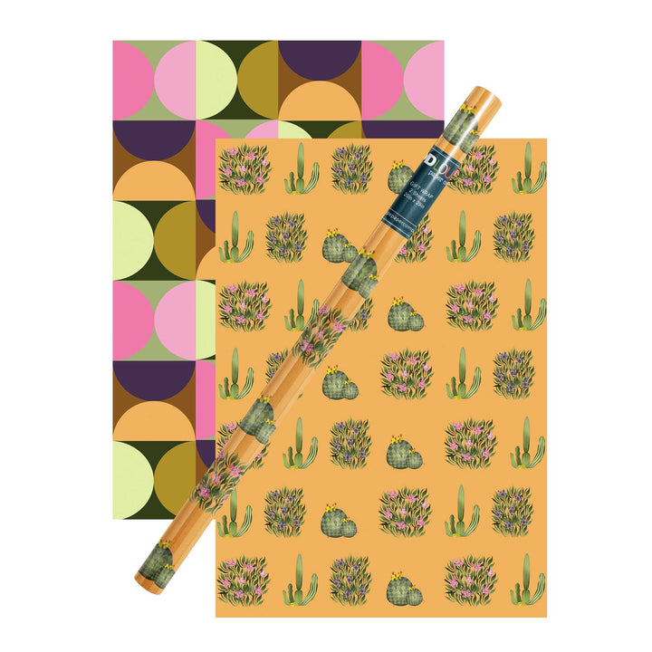 Wrap your gifts with a western flair with our Cactus Flower Double Sided Gift Wrap. This heavy weight and durable luxe sheet features a bright and vibrant mid century modern design on one side, and illustrated cacti on the other that is sure to make your gifts stand out. Perfect for any DIY craft project, special occasion, or just a swanky succulent lover, this gift wrap is both practical and eye-catching.