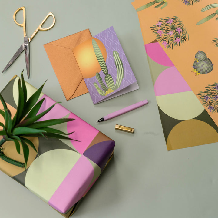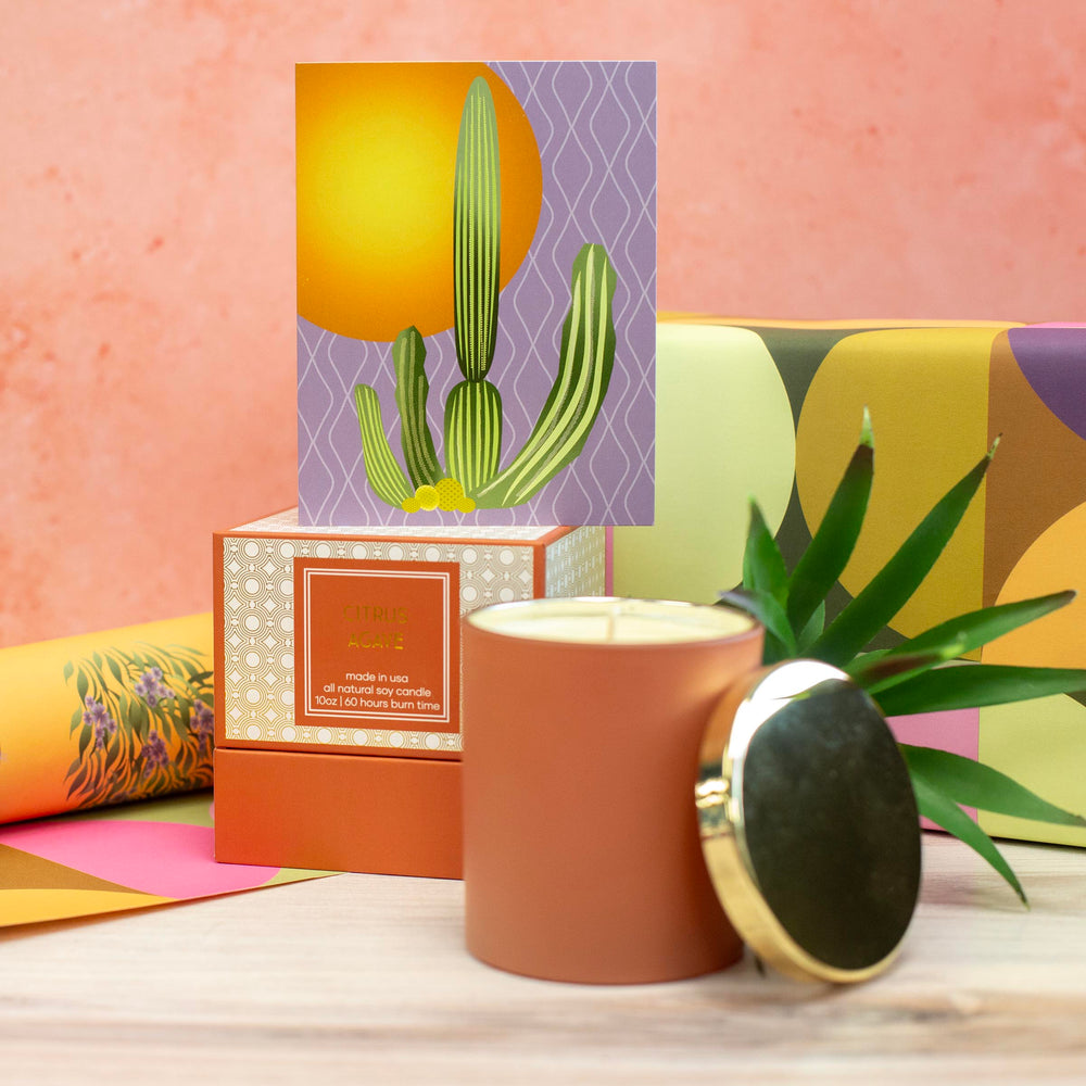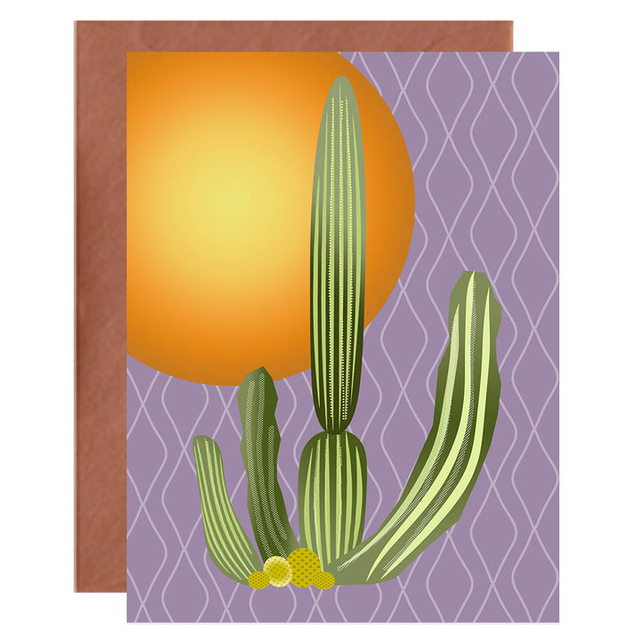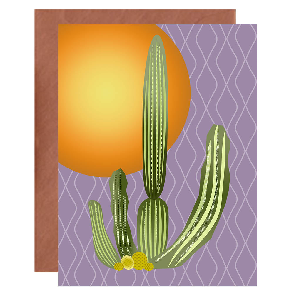 Experience the warm glow of the desert with our Cactus Vintage Western Notecard! Featuring stunning cactus and sunset illustrations, each card comes with a metallic copper envelope that adds a touch of elegance. With blank inside, let your words take center stage for any occasion!