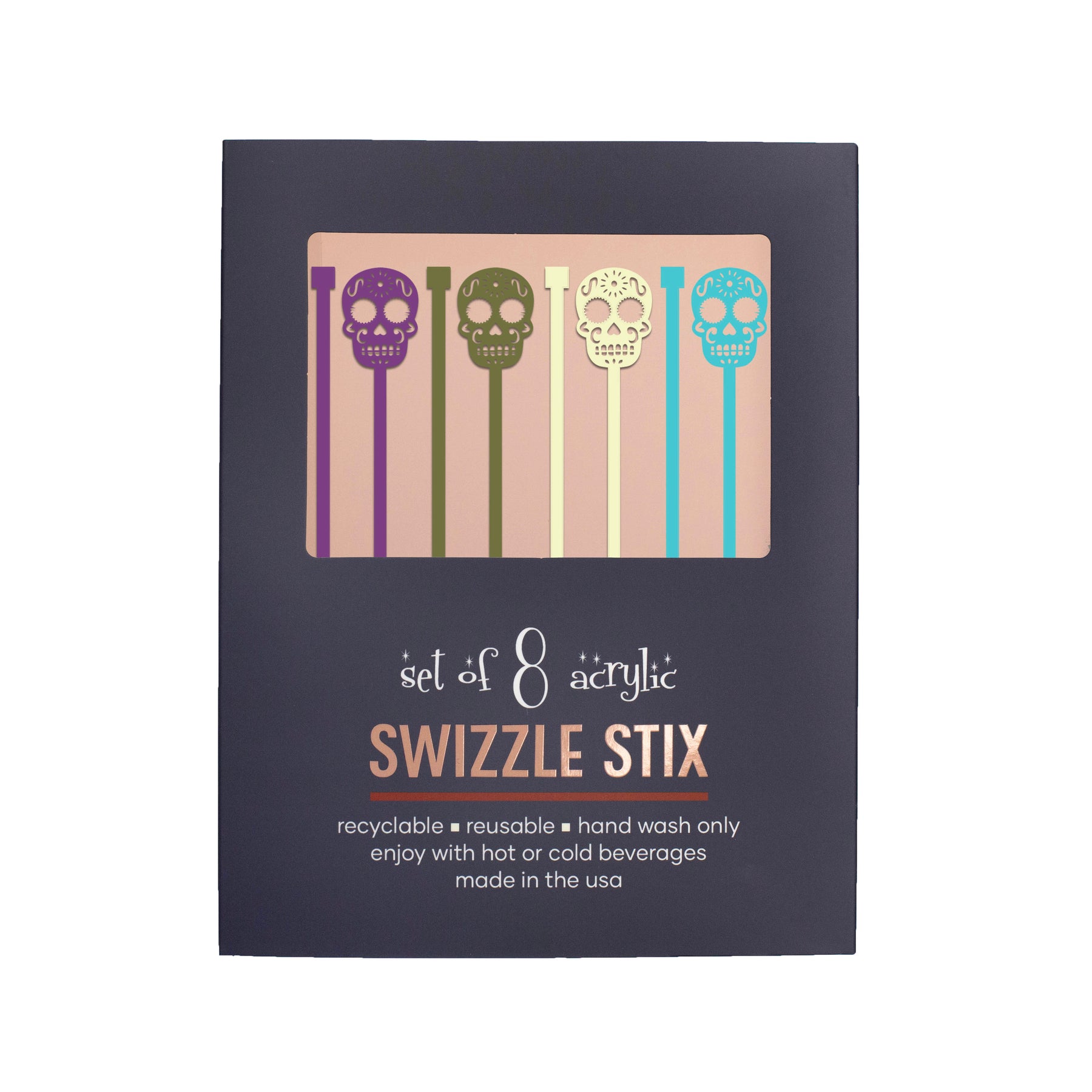 Serve up a fiesta with these fun Sugar Skull Beverage Mixing Swizzle Stix! Perfect for Cinco de Mayo and Day of the Dead celebrations. Say '¡Olé!' while adding a unique, festive flair to every cocktail with these colorful, eye-catching sugar skulls.