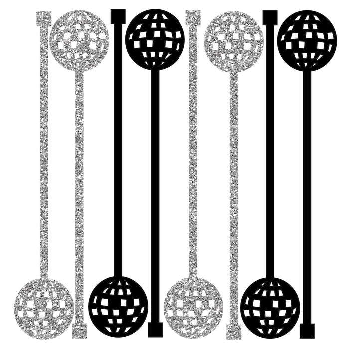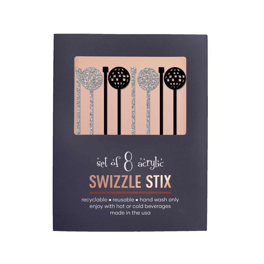 Light up the night with these Disco Ball Glitter Beverage Mixing Swizzle Stix! Swanky black and silver glitter acrylic give added glam and the perfect finishing touch for your craft drink. Perfect for parties, birthday, bachelorettes or 70's theme party - these beverage mixing swizzle stix come in a boxed set of 8 and are sure to impress! Unlimited fun possibilities guaranteed.