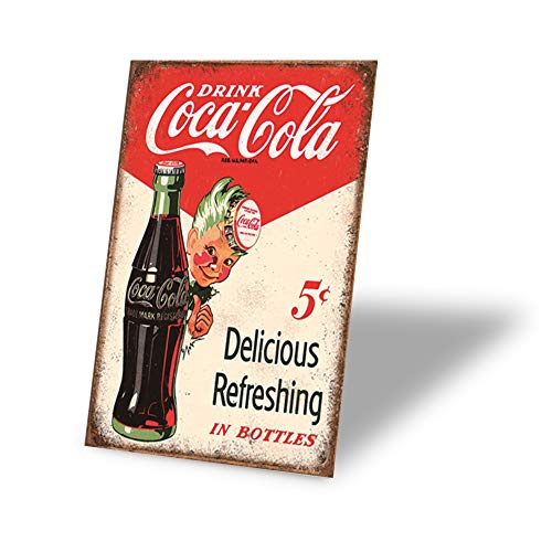 - Tin sign featuring Coca Cola ad reads, "Delicious Refreshing in Bottles"