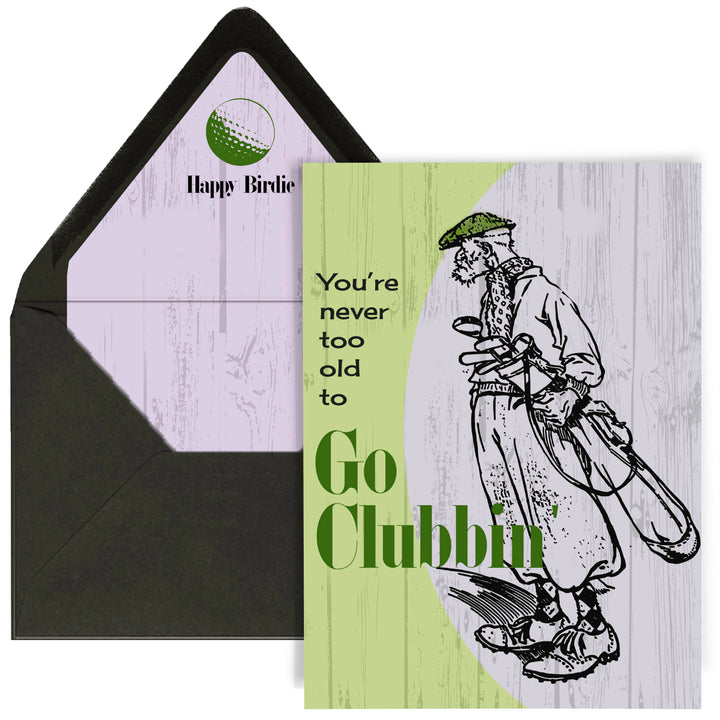 Funny Never Too Old To Go Clubbin Vintage Golf Birthday Card