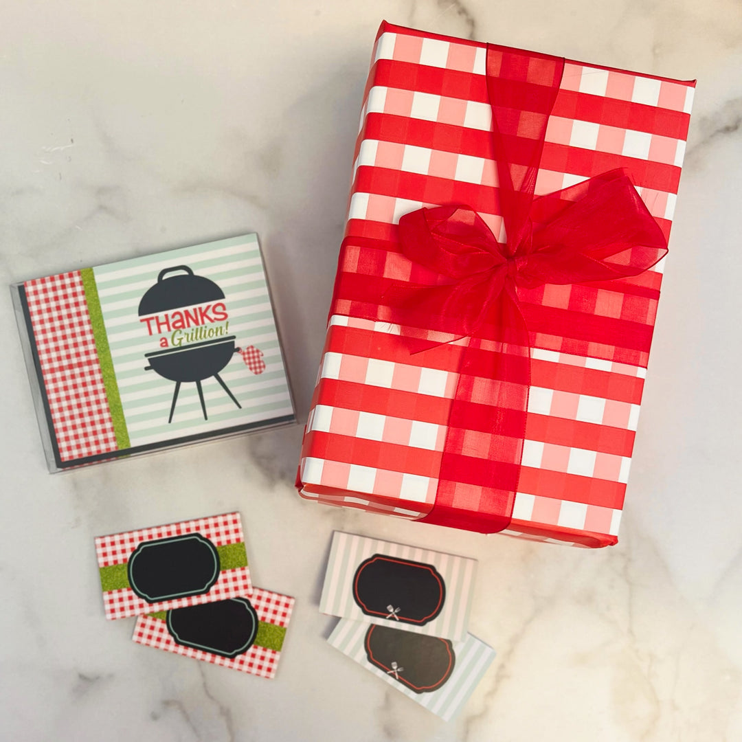 Red and white gingham gift wrap summer barbecue festive colorful