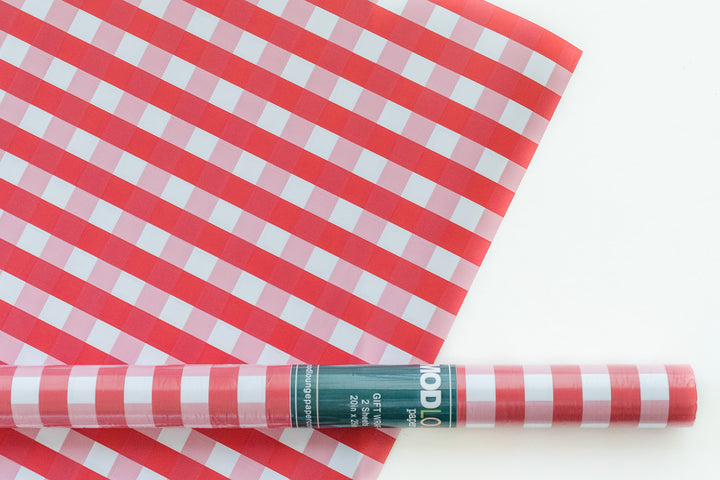 Elevate your gift-giving game with our Red Gingham Gift Wrap! This classic pattern adds a charming touch to any present and can also be used for DIY projects. Our durable 70# weight paper ensures a quality wrap every time, finished with a matte sheen for a sophisticated look.