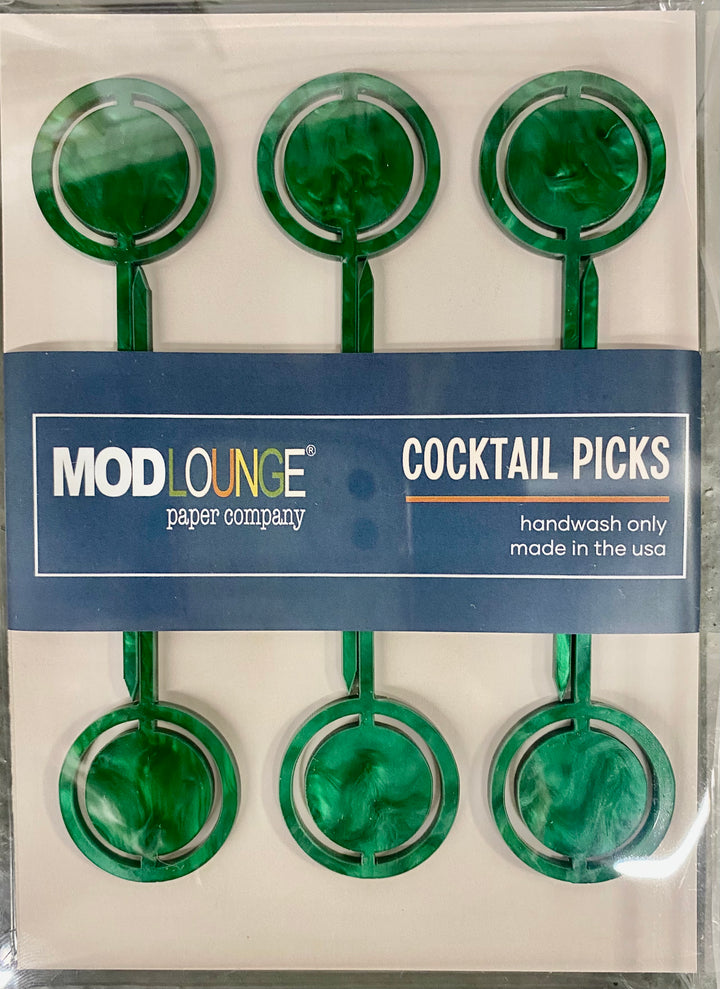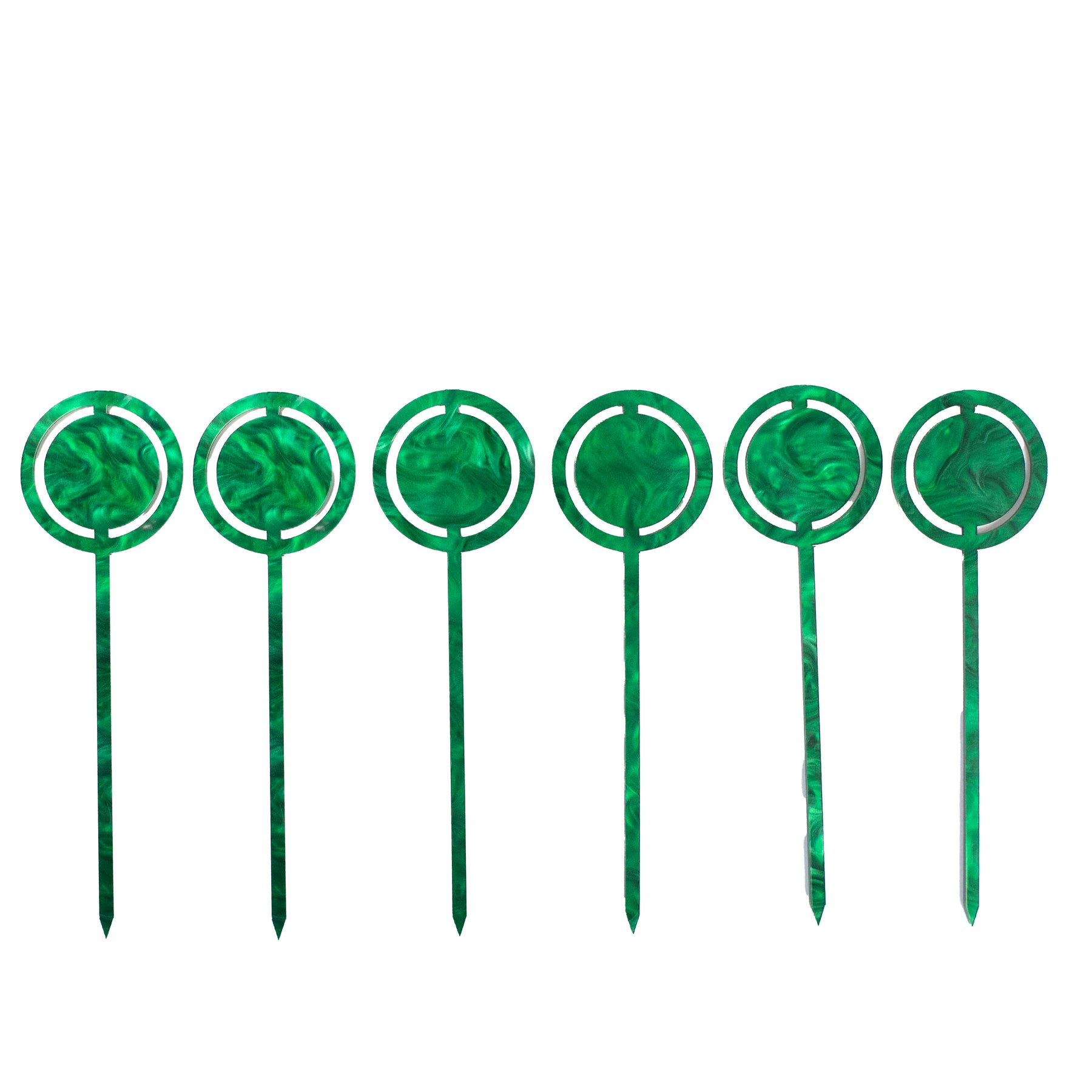 Green Pearl Circle Mid Century Modern Acrylic Cocktail Appetizer Pick