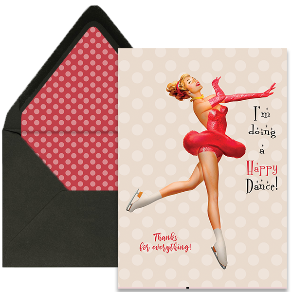 Happy Dance Vintage Pinup Ice Skater Thank You Card