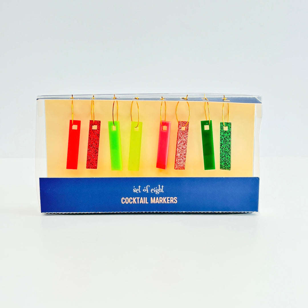 Jolly Holiday Brights Acrylic Christmas Cocktail Marker Wine Charms
