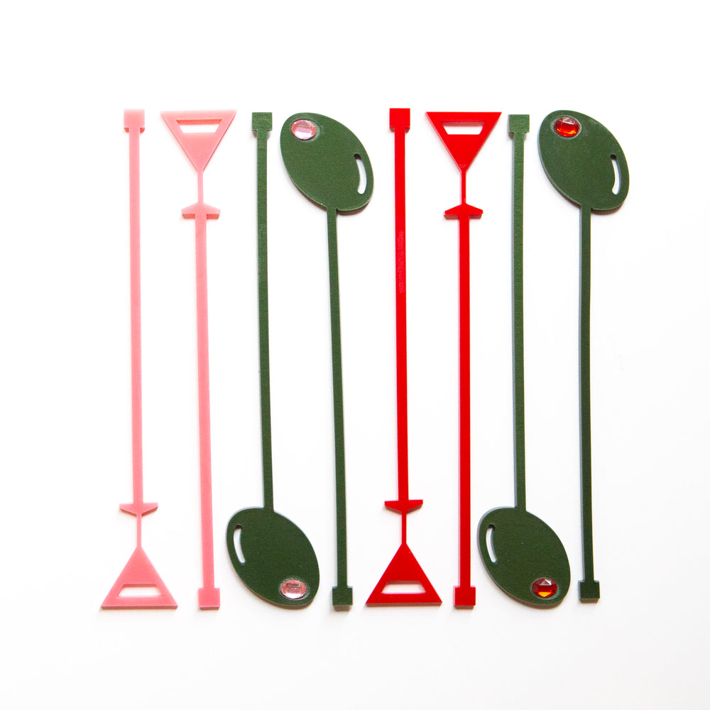 Martini and Olive Red and Pink Acrylic Beverage Stirrer Swizzle Stix