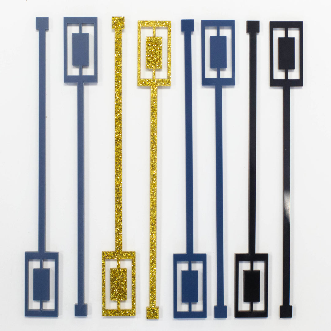 Elevate your cocktail game with these stylish and glam Acrylic Swizzle Stix Drink Stirrers. Inspired by mid century modern design, these barware pieces are not only eye-catching but also reusable, making them a practical and eco-friendly addition to your home bar. Created to coordinate with our blue rectangle cocktail glass collection makes these swanky swizzles a great gift!