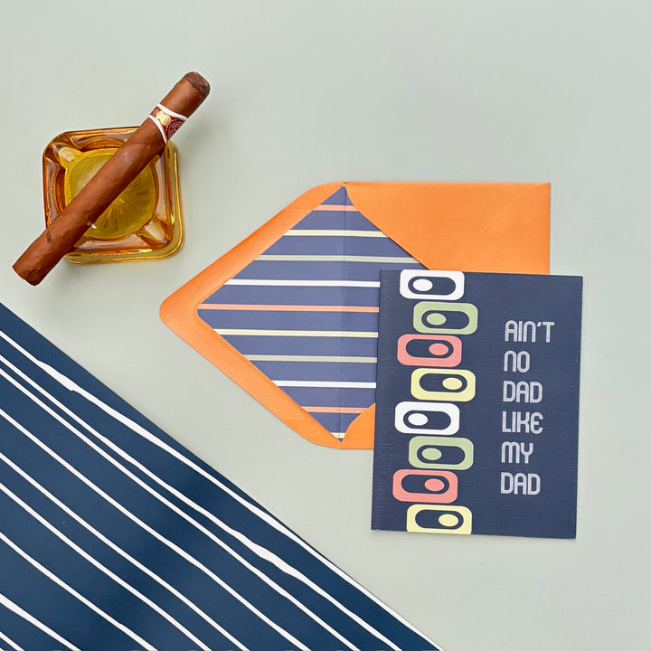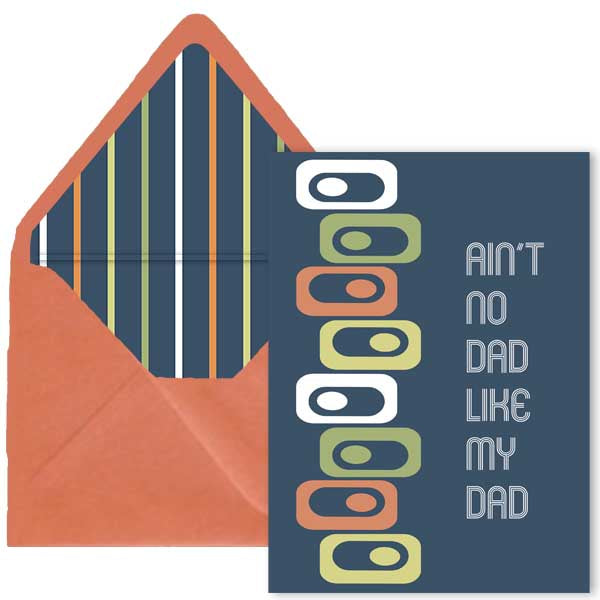 This classic card for Dad is just the way to show him how much you care! With a mid-century modern style and sassy "Ain't no dad like my dad" slogan in retro font, it's a gift with personality plus - not to mention the envelope liner that sets it apart from the rest. Now that's dad-approved!