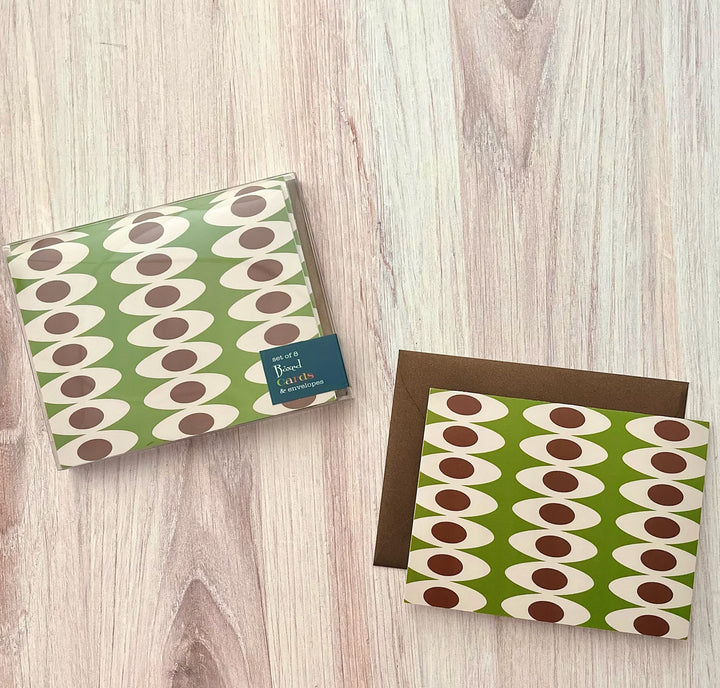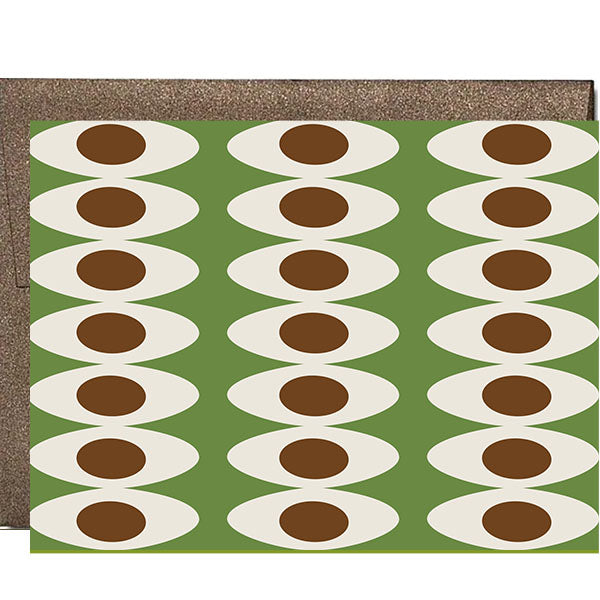 Elevate your correspondence with our retro Oval Rows Pattern Notecard! This stylish card features a classic green and brown mid century modern oval design, guaranteed to make a statement. With a blank interior and coordinating red envelope, this card is perfect for any occasion.