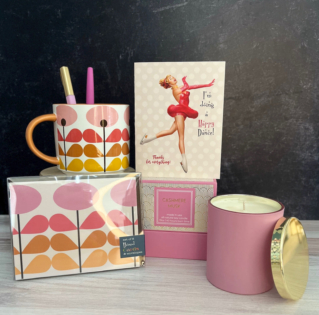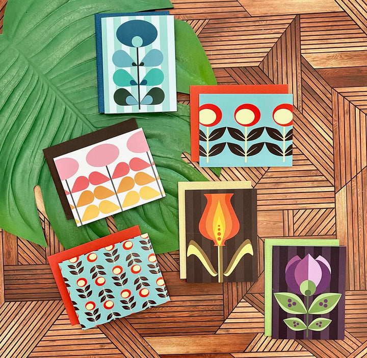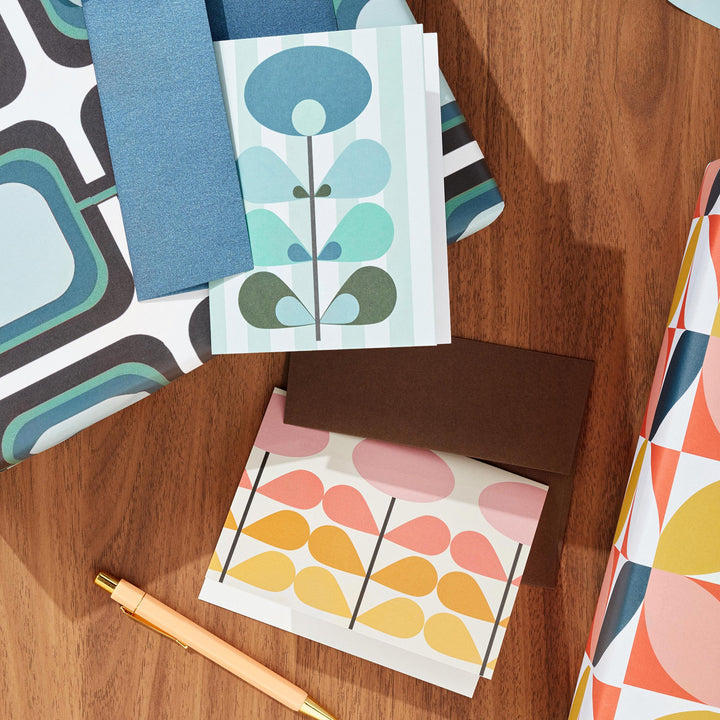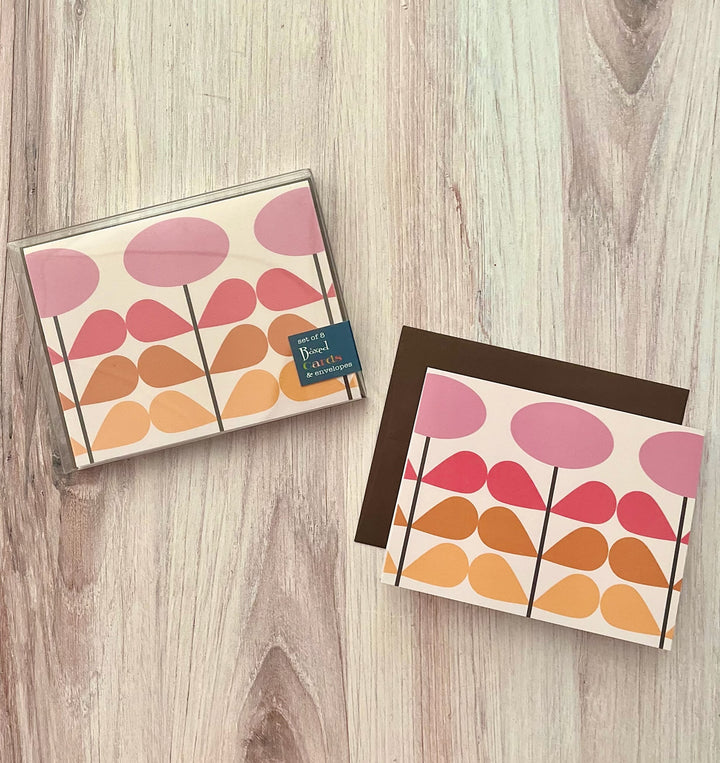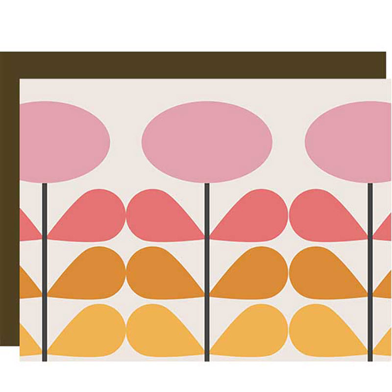 Add a pop of color to your correspondence with our Pink Mod Flower Notecard! Featuring a charming mid century modern teardrop flower pattern in a monochromatic pink and orange warm color palette, it's sure to catch the eye. And with a blank inside, you can personalize each note. Coordinating brown envelope included.