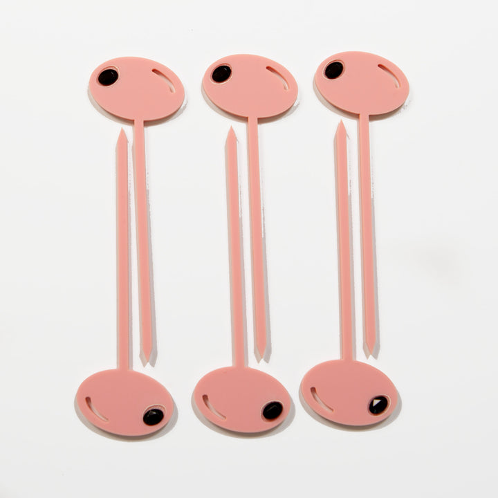 If Barbie hosted a cocktail party, her pink martinis would be flanked with these unique cocktail picks. Sip in style with this kitschy sublime set of pink olive acrylic cocktail picks! Each pick is detailed with a black rhinestone “pit” and presented in an elegant box of 6 - created for the sophisticated sipper and perfectly packaged for gift giving. Impress your guests with these gorgeous and creative picks!