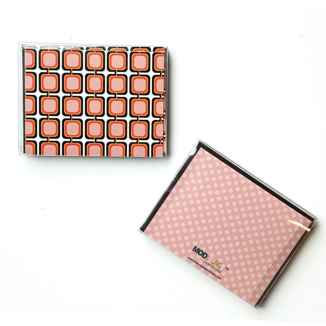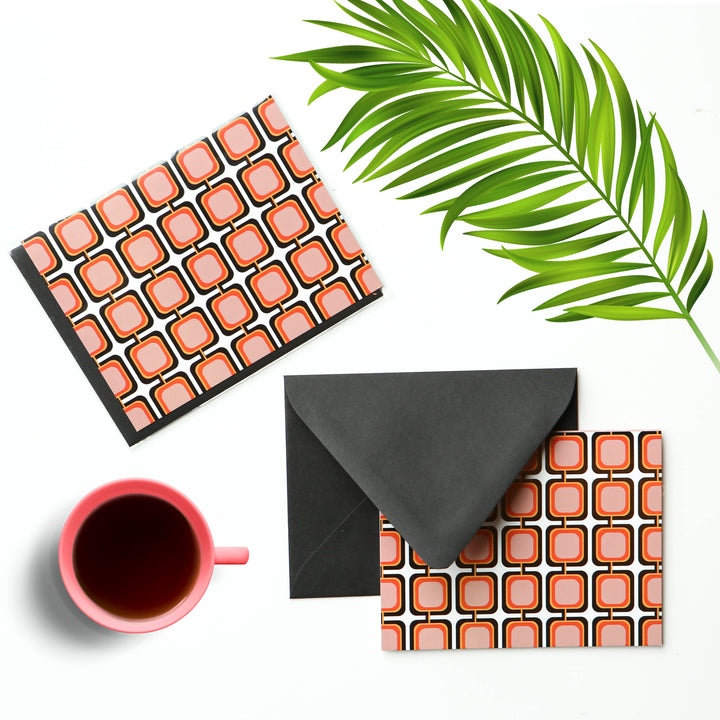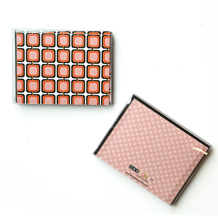 Experience nostalgia with our Pink Retro Squares Mid Century Modern Notecard! The vibrant pink retro squares on this card evoke a sense of playful energy and charm. With a blank inside, this card is perfect for any occasion. Comes with a classic brown envelope. Add a touch of retro to your correspondence now!