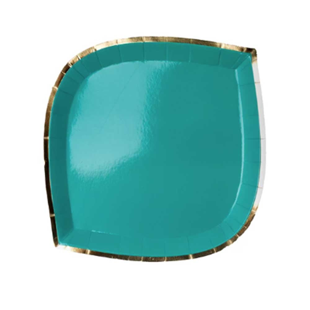 Teal Buoy Bye Posh Paper Plate with Gold Trim