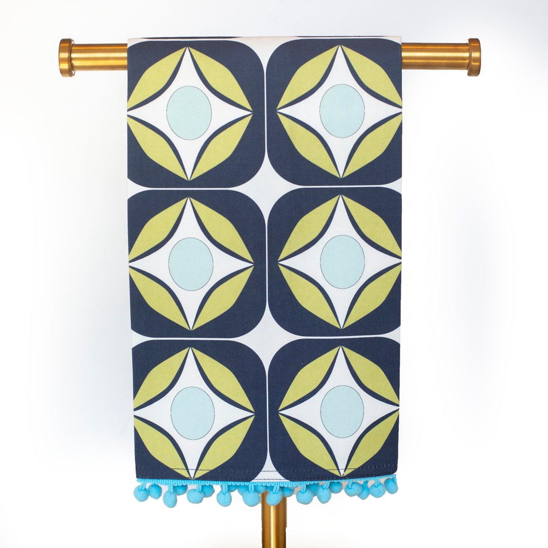 Blue Circle Mid Century Modern Tea Towel with Trim