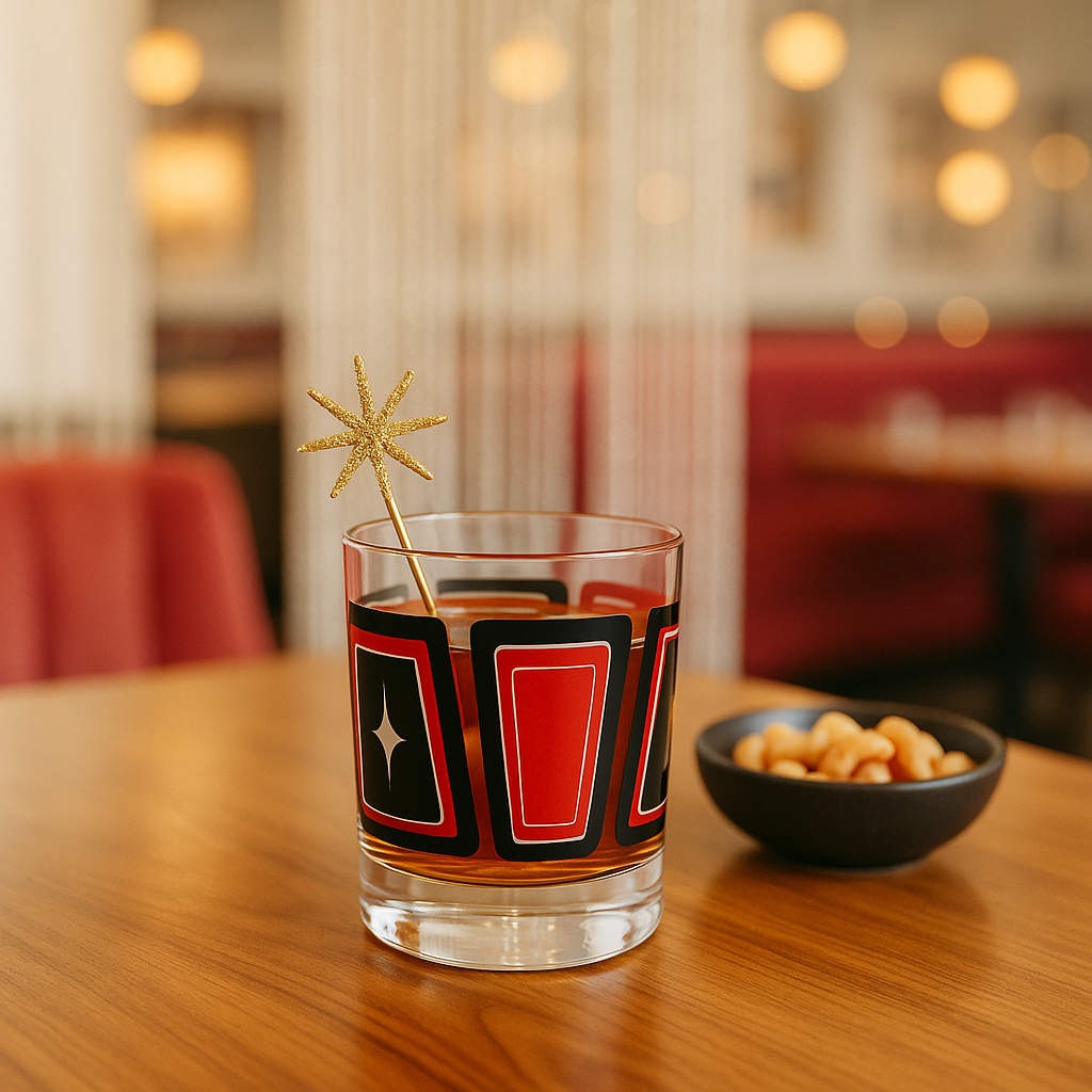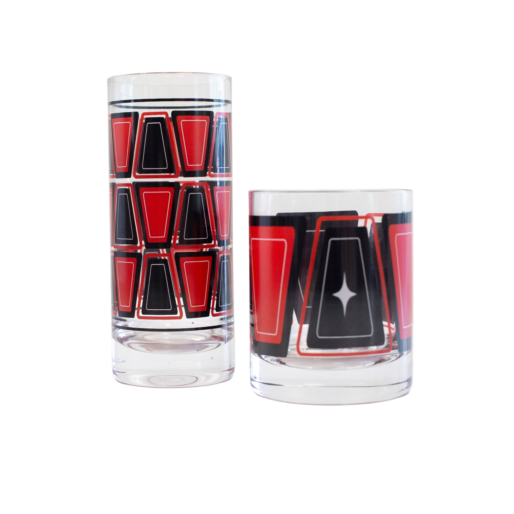 Experience the perfect blend of style and function with the Red and Black Retro Blocks Vintage Inspired Whiskey Cocktail Glass. Its striking red and black retro design adds a bold, nostalgic touch to your barware collection, making every sip bringing you back in time. Crafted with a weighted bottom quality rocks glass, it’s ideal for enjoying whiskey, scotch, bourbon or a crafted cocktail on the rocks with timeless elegance.