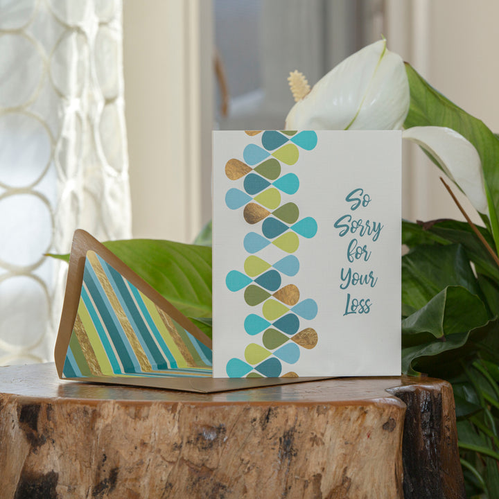 Express your heartfelt condolences with this Sorry for Your Loss Card. Its beautiful mid century modern design and heartfelt greeting offer your sincerest sympathies and thoughts during a difficult time. Featuring a coordinating envelope liner, this card will bring some comfort to the bereaved. occasion.