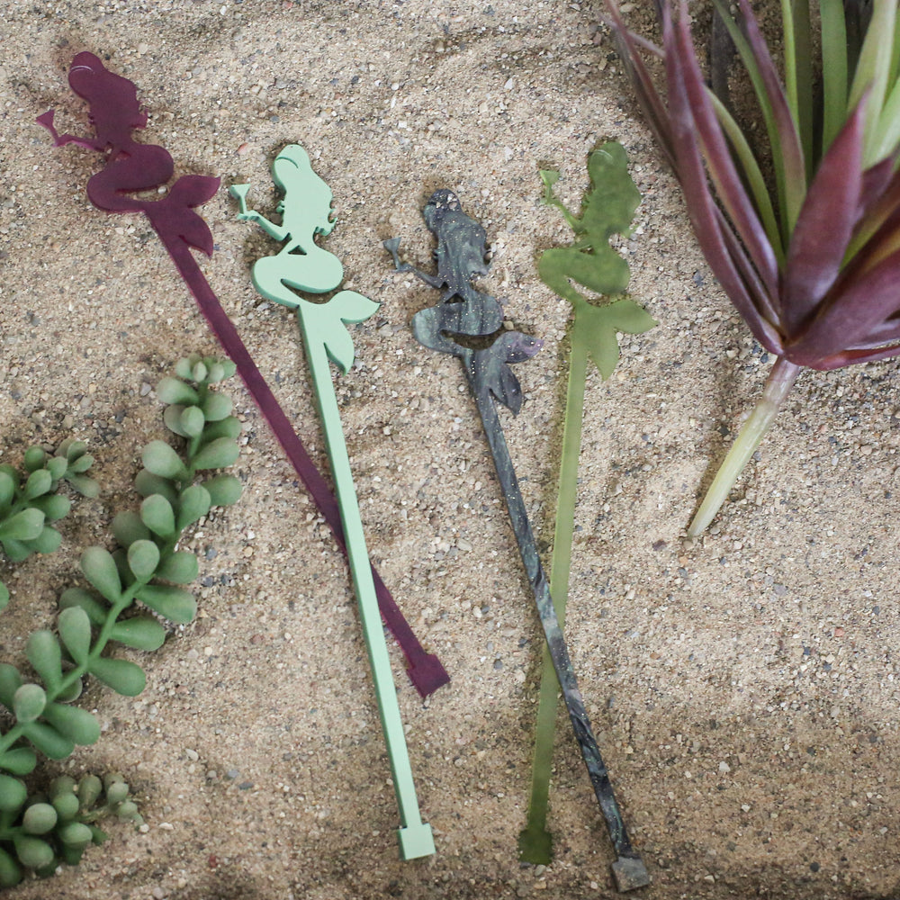 Vintage Pinup Mermaid Acrylic Beverage Mixing Swizzle Stix