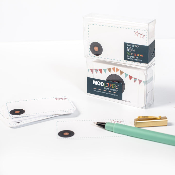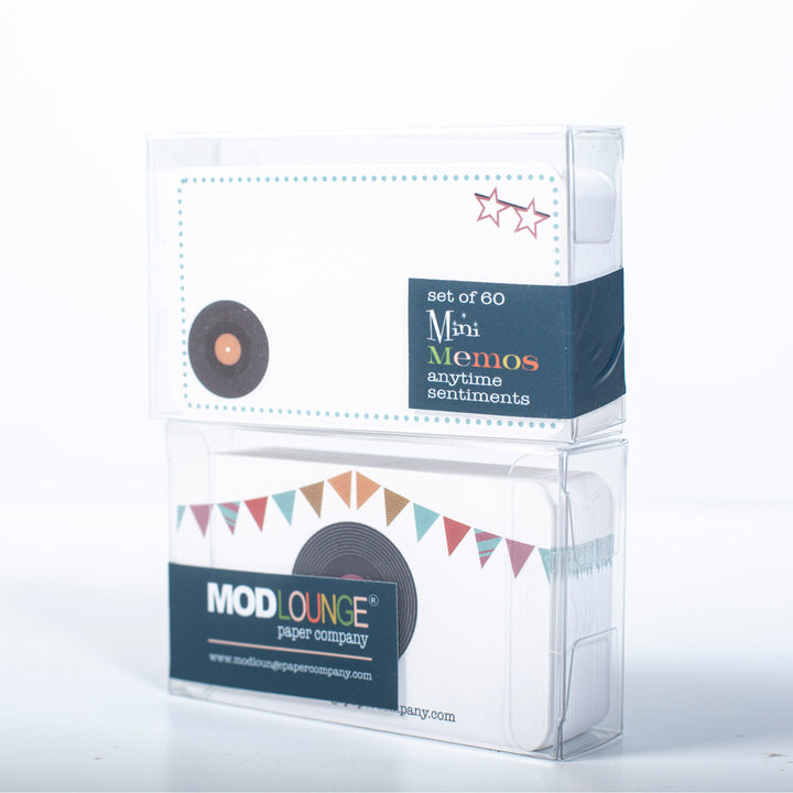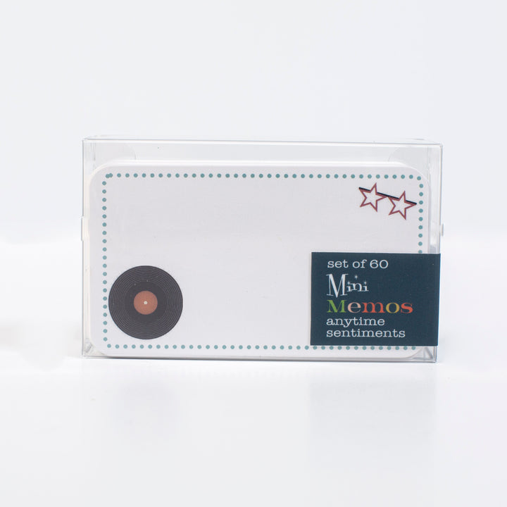 These nostalgic vinyl record mini memos pack a MIGHTY punch! With 60 mini cards in each box, these anytime sentiments have so many uses. Send a little lunch note in your child's lunchbox, slip a sassy message in your mates laptop, wish a co-worker a birthday note on their desk, or use at parties as food tags on a buffet table, or name tags at a dinner party. You will find that once you start using them, you'll become addicted to writing daily sentiments!